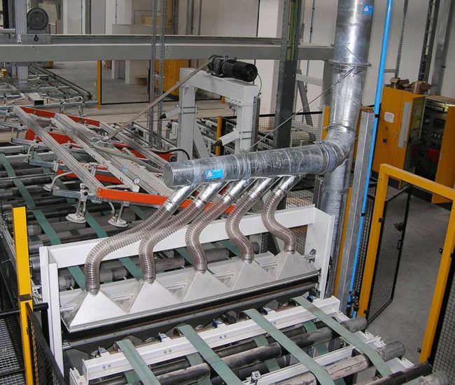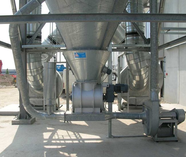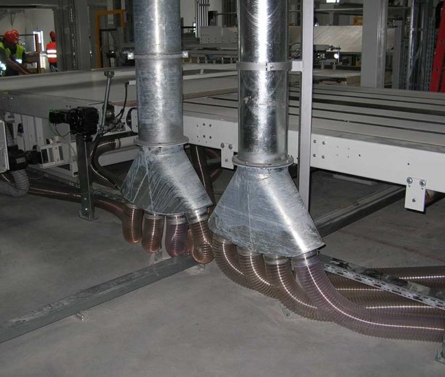 For the wood industry, MCM s.r.l. offers suction and purification systems to be fitted into automatic operating machines. Dust is collected inside a cyclone filter with filter sleeves, under the negative pressure of two centrifugal ducts. The system is fitted with a pneumatic loading system for dust unloaded on roll-off containers.