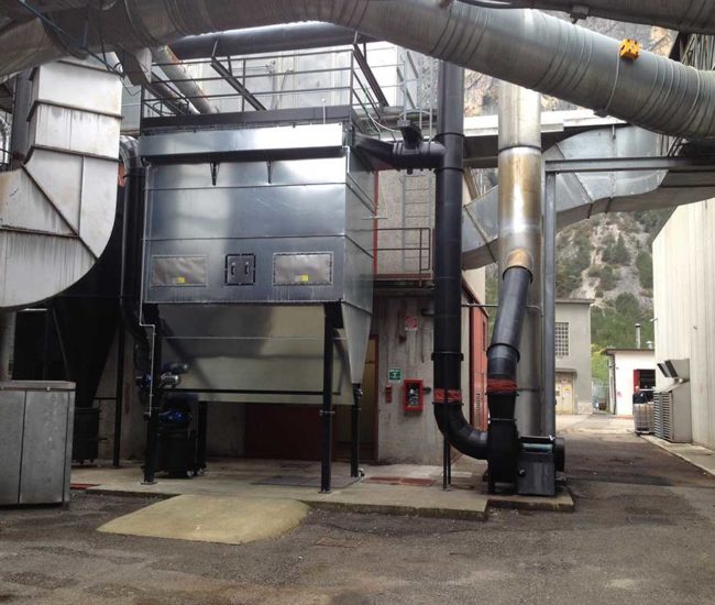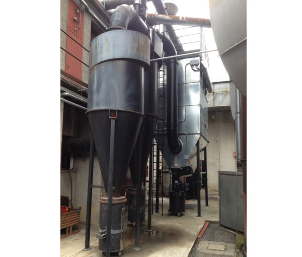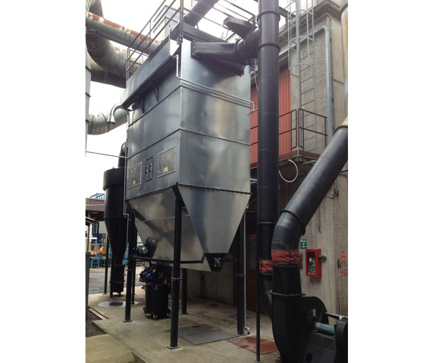The purification system offered here consists of a filter unit and a settling unit, built with a sheet adapted to high temperature and acid fumes. Dust is collected in a container.