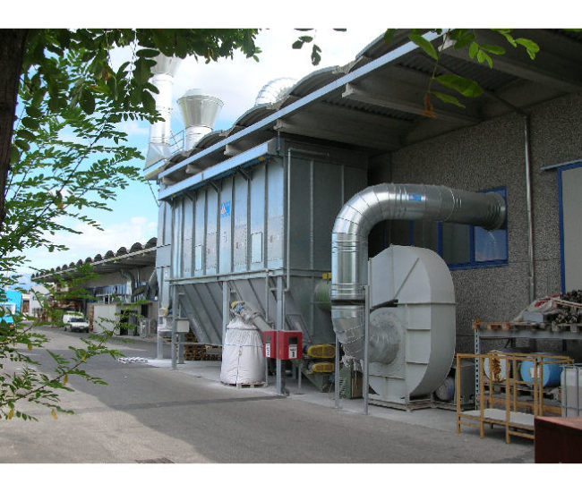 Systems installed here are designed to purify processes from the wood industry, with particular attention to the noise abatement through soundproofed compartments.