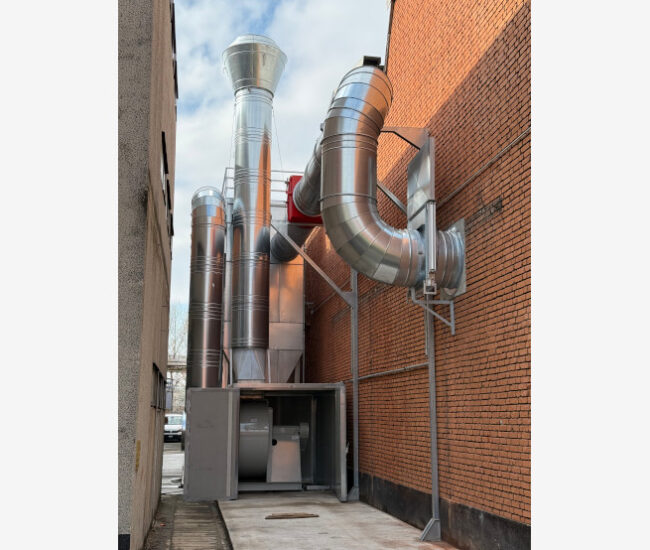 The filtration unit presented here is designed for the suction of high air volumes generated by stainless steel processing machines. It consists of a hopper equipped with an extraction screw and rotary valves, with waste discharge taking place inside a Big Bag sack.