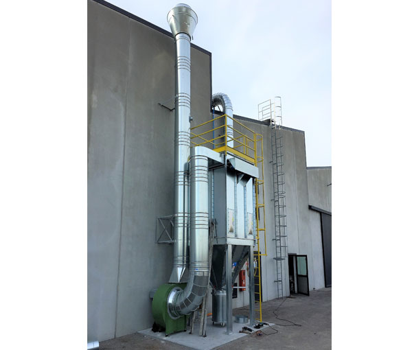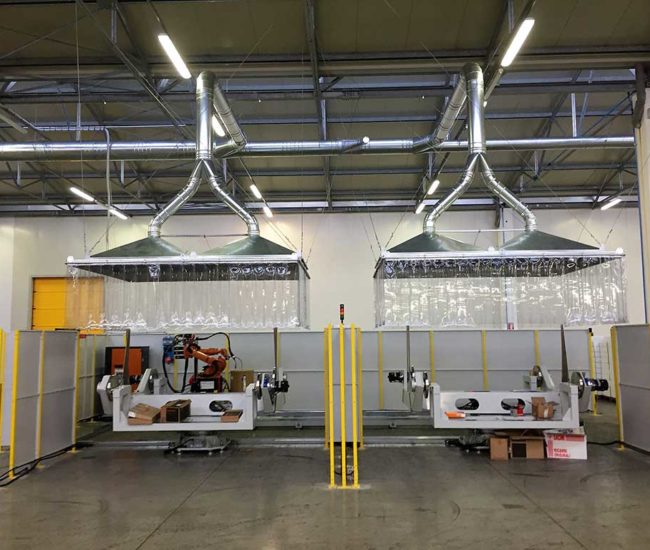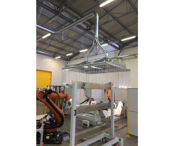 Welding fumes from the robotised islands are aspirated via environmental hoods fitted with a cartridge filter unit inside.