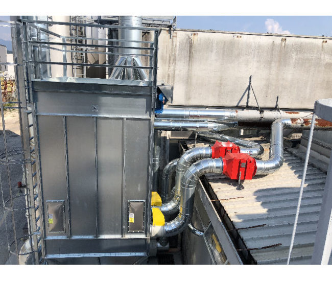 Sviluppato per la depurazione dell’aria proveniente da impianti di verniciatura, L’impianto qui proposto è provvisto di un gruppo filtrante a maniche. Inoltre sono state installate delle valvole di non ritorno certificate, per isolare gli ambienti in caso di incendio accidentale dell’impianto.