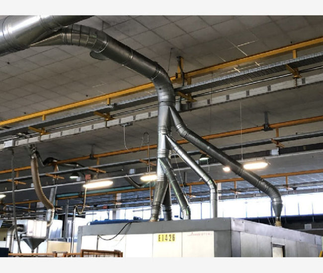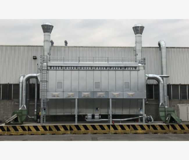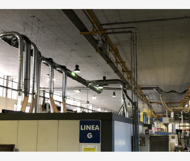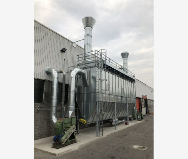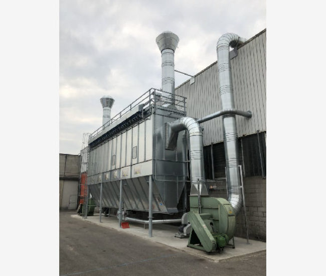 Il gruppo filtrante qui presentato, è progettato per l’aspirazione di alte portate d’aria provenienti da macchine per la lavorazione del polistirolo. Composto da tramoggia provvista di coclea estrattrice e valvole stellari, lo scarico degli scarti avviene tramite linea pneumatica in pressione.