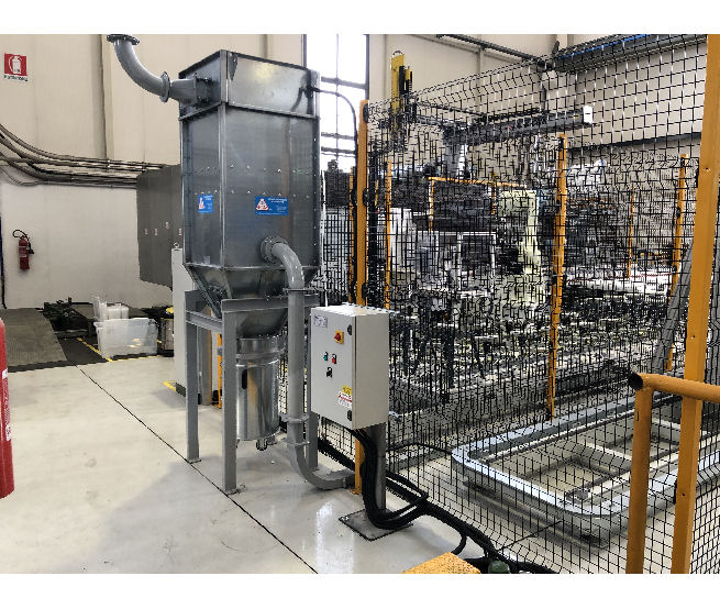 Per l’industria del legno, MCM s.r.l. propone impianti di aspirazione e depurazione da integrare a macchine operatrici automatiche. Come nel caso di questa isola robotizzata, provvista di macchine utensili. Le polveri vengono convogliate all’interno di un filtro a cartucce, messo in depressione da un compressore, opportunamente cabinato per ridurne la rumorosità di funzionamento. […]