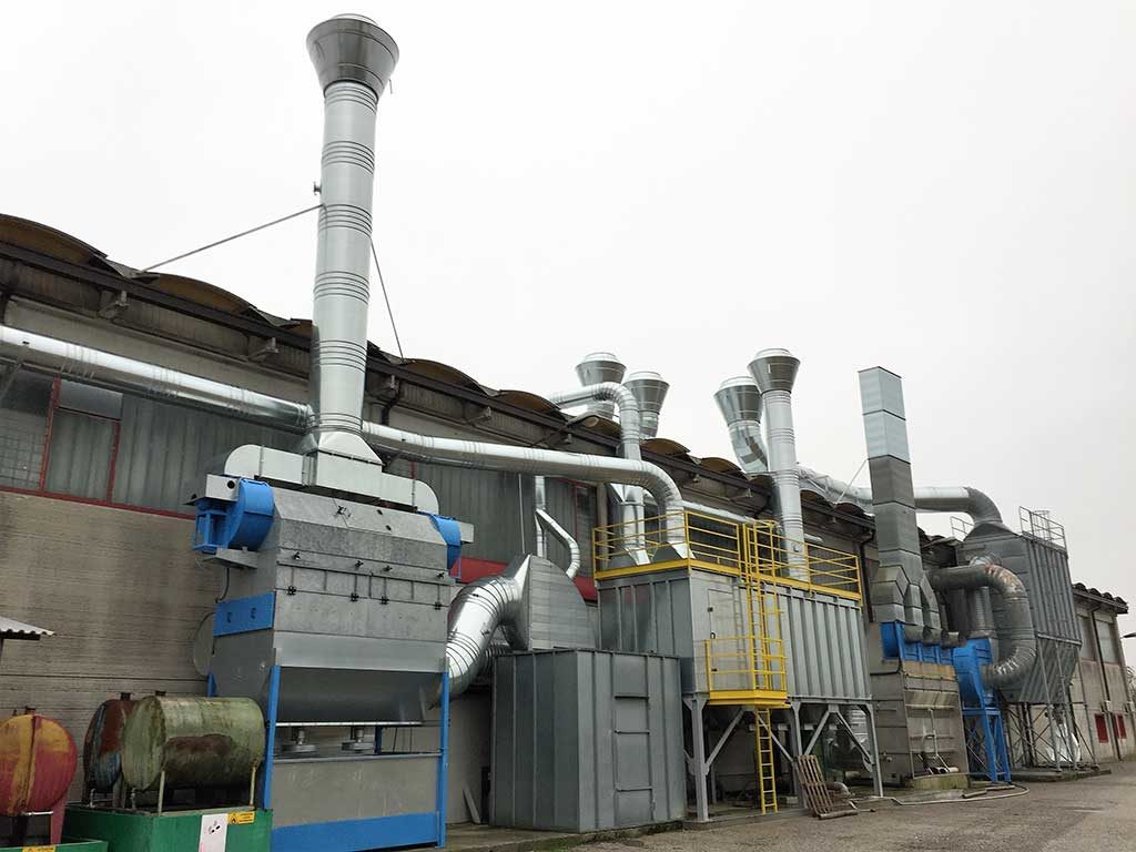 Sviluppato per la depurazione dell’aria proveniente da impianti di verniciatura, L’impianto qui proposto è provvisto di un gruppo filtrante a maniche. Inoltre sono state installate delle valvole di non ritorno certificate, per isolare gli ambienti in caso di incendio accidentale dell’impianto. […]